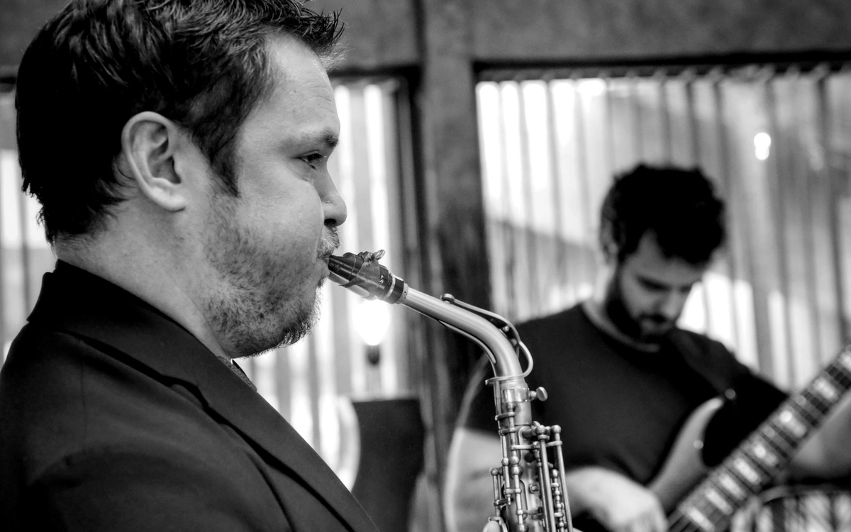 Aux avant-postes, deux solistes de haut vol : un guitariste et un saxophoniste au rayonnement international, unanimement salués pour leur talent et leur créativité. À leurs côtés, une section rythmique brillante, taillée sur mesure, qui déploie une énergie subtile et une efficacité redoutable.
