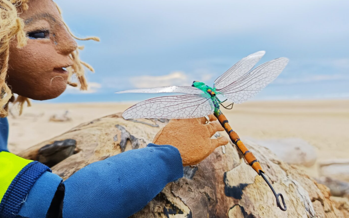 C’est alors qu’une ombre se rapproche d’elle et murmure : « Oh, petite libellule, tu es coincée sur mon surf, tes pattes sont pleines de wax! » Lizbellule vient de rencontrer Jo’, jeune surfeuse. Cherchant des solutions pour retrouver son envol, collées l’une à l’autre, elles vont s’entraider et partent ainsi à l’aventure de l’autre côté de la dune! »